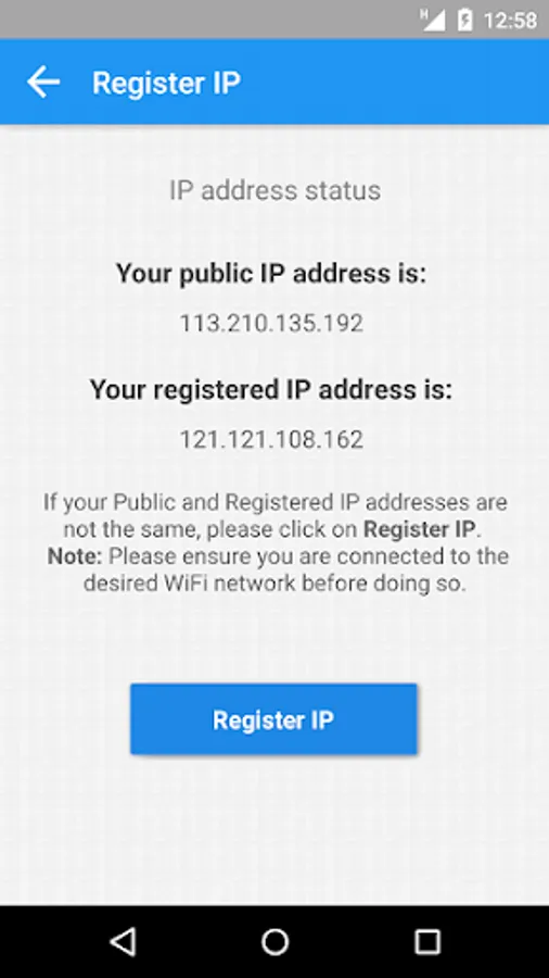 - Register your current IP address with the system