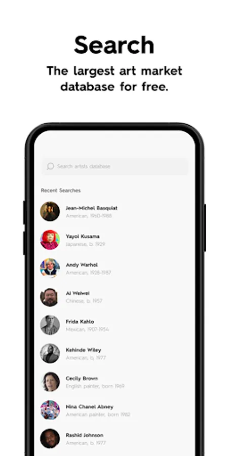 Unlimited Searches. No Fees. Explore the largest art market database with comprehensive results of past auctions. See snapshot graphs of how artworks and artists have performed over time. Filter each artist’s auction database to find the best matches for your needs.