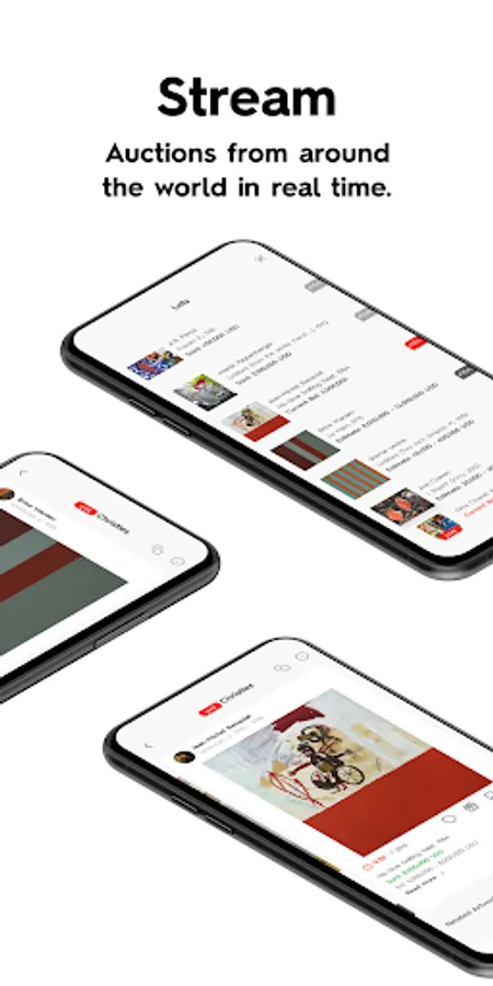 Bring the excitement of the auction sales room to you wherever you are, all from one app. Follow along in real-time as various art auction houses hold their auctions. See incoming bids, hammer prices, and premiums across auction houses all from within the LiveArt app.