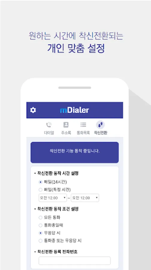 Call forwarding setting is possible that reflects real-time business status such as work, meeting, business trip, and vacation.