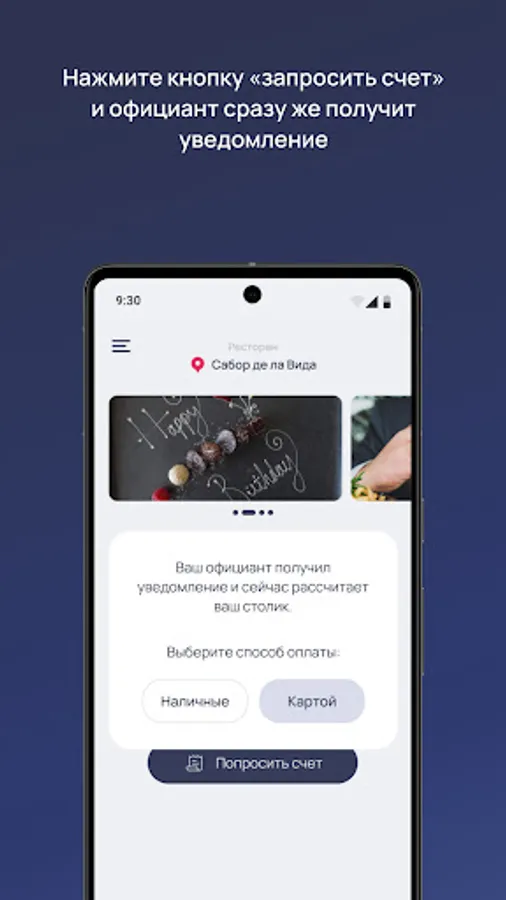 Just click the "request invoice" button and the waiter will immediately receive a notification. What could be easier?