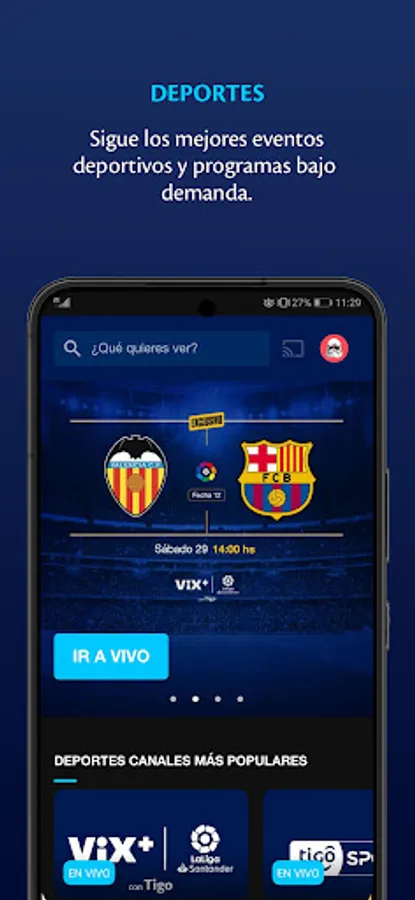 Don't worry if you're away from home and it's time for the game or your favorite show. Watch live the best leagues and tournaments in the world: Champions League, Europa League, MLB, NBA, NFL, La Liga, Serie A, Ligue 1, LPF, National Baseball, Gold Cup, Copa América, World Cup and much more.
