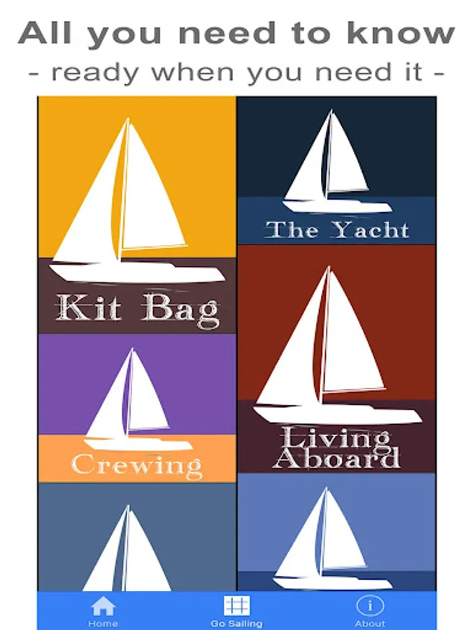 Start Sailing: Yachts is an illustrated reference guide for novice sailors. It is full of tips advising users how to get started in sailing and become a competent crew member of a sailing yacht.