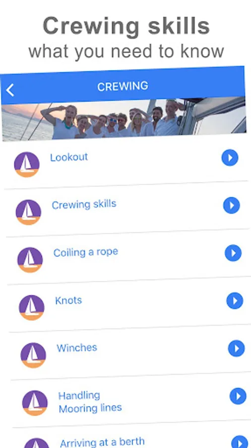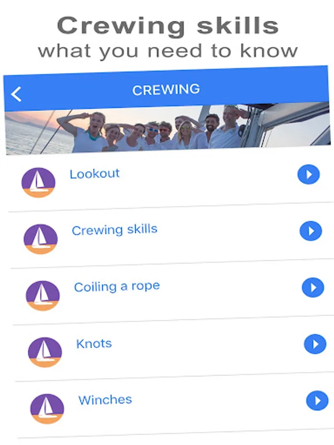 CREWING - keeping watch, crewing skills, essential knots, winches, arriving and leaving a berth, helming, hoisting sails, points of sail, tacking, gybing, anchoring and more