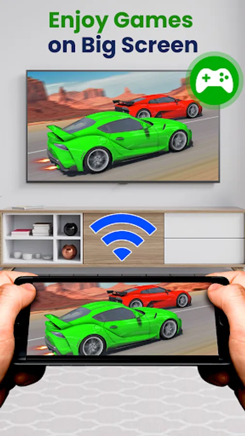 By using this screen mirroring app free you can easily access mobile games ""like"" Action, Adventure, Puzzle, Shooting, Simulator, Sports, Music, E-Books, and all media files.