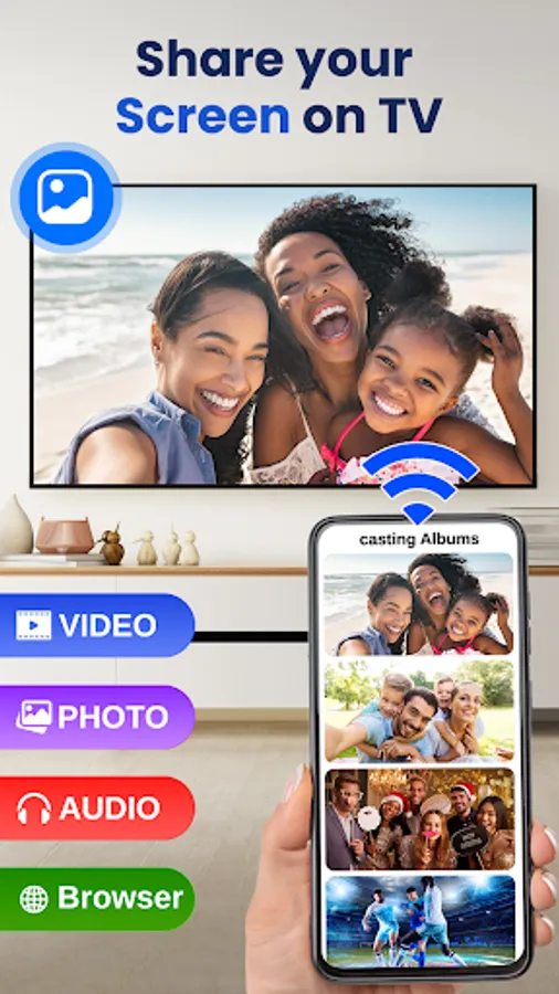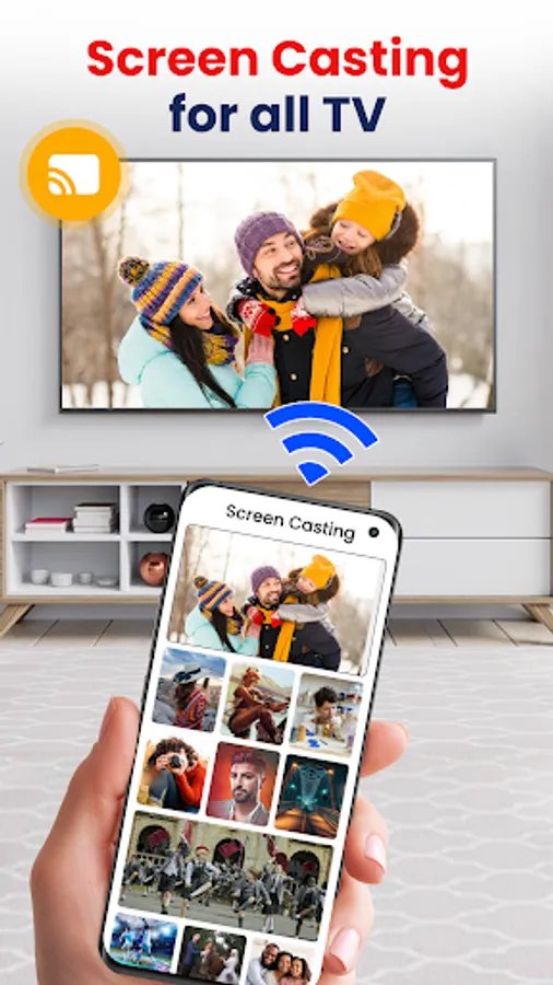In cast to the TV app, you can easily turn your living room into a multimedia hub where you can watch all of your favorite shows, movies, music videos, and your photography on a huge screen. With Cast to TV screen mirror app for android, Show your wedding or any gathering photos or videos in Cast to TV app on a very big screen.