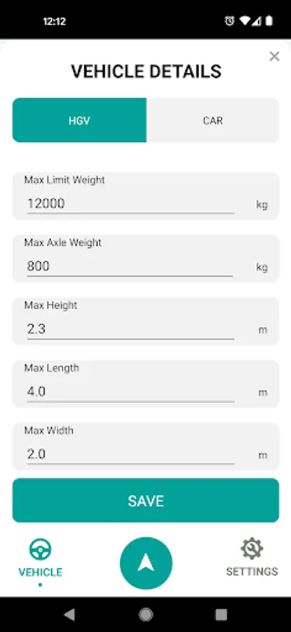 Vehicle dimensions are automatically populated in Turn through our integration with Stream. This means your vehicles max height, length and width, along with max weight limit and max axle weight are factored in when Turn is calculating a suitable route for your vehicle.