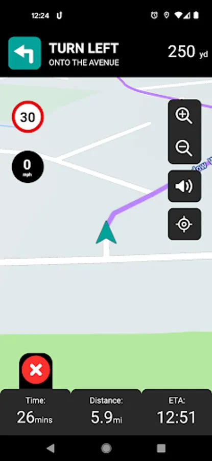 Turn-by-turn guidance with accurate distance and ETA display
