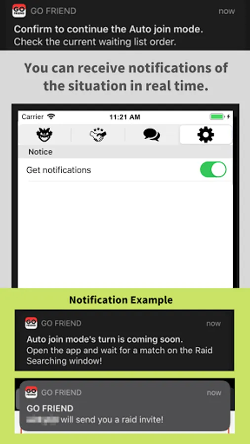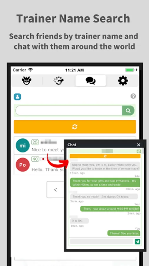 GO Friend is an application for remote raids, trainer name search, and friend chat, etc.
