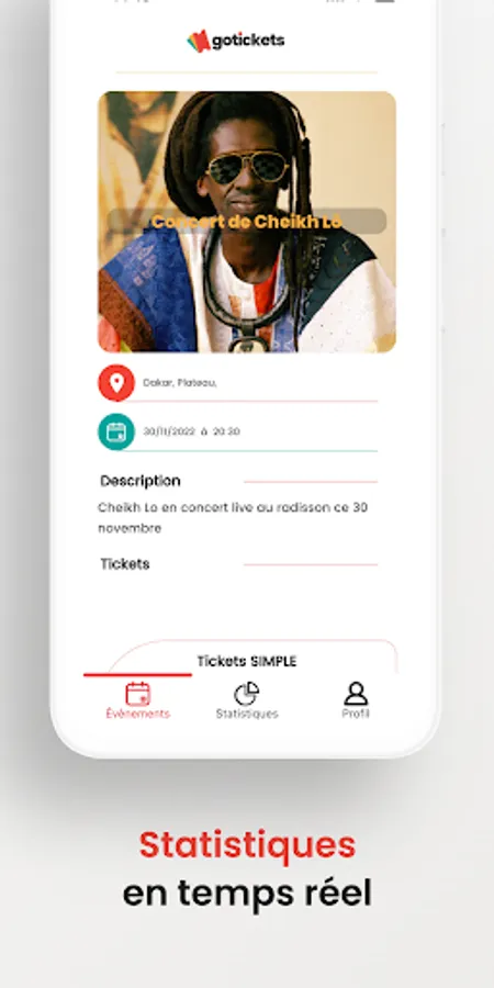 Go Tickets Organizer is an event app for organizing events. It allows organizers to create, plan and specify the location of their events while specifying details such as the types of tickets available, the number and the prices.