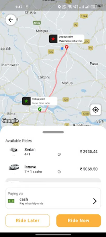 Customers can schedule a Pickup/drop, Airport Taxi, Local/Rental, Outstation roundtrip ride in advance via this app or website Customers can connect to us via call or WhatsApp on our 24x7 nos. for urgent bookings.