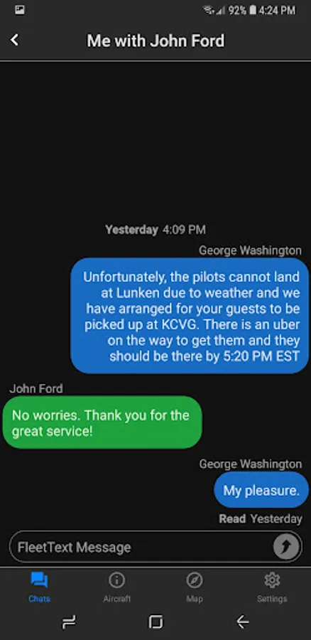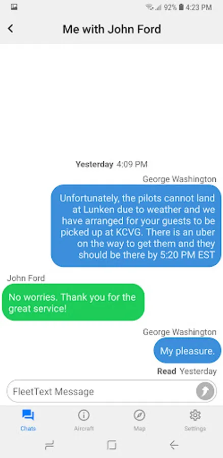 FleetText is an aviation communication platform which allows you to message pilots or passengers connected to an Airtext router aboard the aircraft.