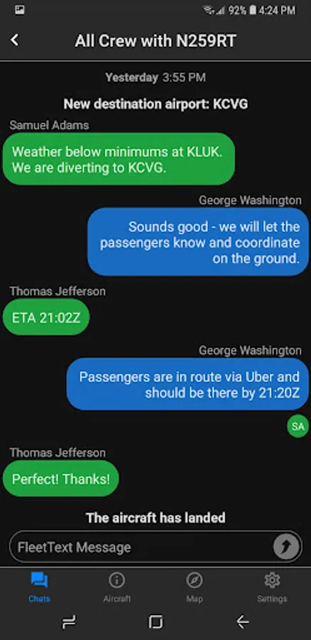Send messages from a group of ground users or as an individual; all members of your dispatch crew will remain up to date.