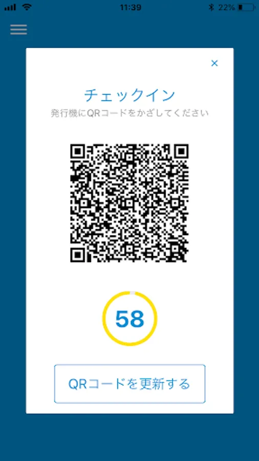 This application can not be used when the QR code code can not be read by the reader due to damage to the display of the user's terminal etc. at check-in.