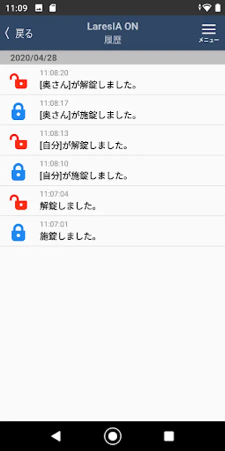 You can check the history of card, security code authentication and manual operation for the past 7 days/up to 280 cases.