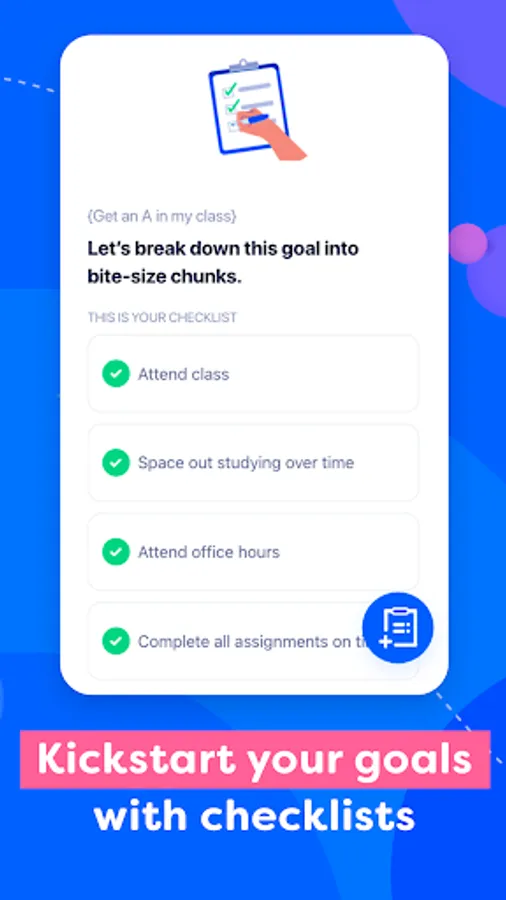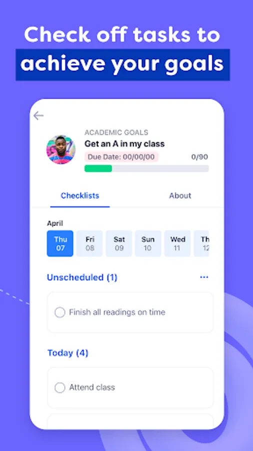 **GOALSETTER** - The goal setter will guide you to create checklists to help achieve goals, remind you about them, keep you motivated as you progress and more! Whether you have daily or weekly tasks to do, achieving goals will turn into a habit with Goalswell.