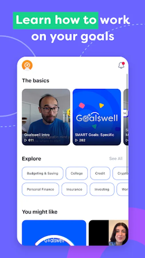 Goalswell is a self-help app that helps you set targets, track your progress and reach your personal or academic goals. On the Goalswell app there are even educational videos that offer insight into the importance of planning, self-control and other behavioral concepts that are intended for users to learn and apply while making their own decisions.