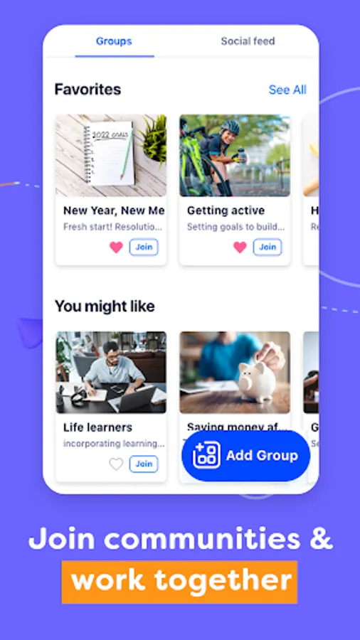 ** GROUP GOALS ** - Create or join a group to support each other on your mutual goals!