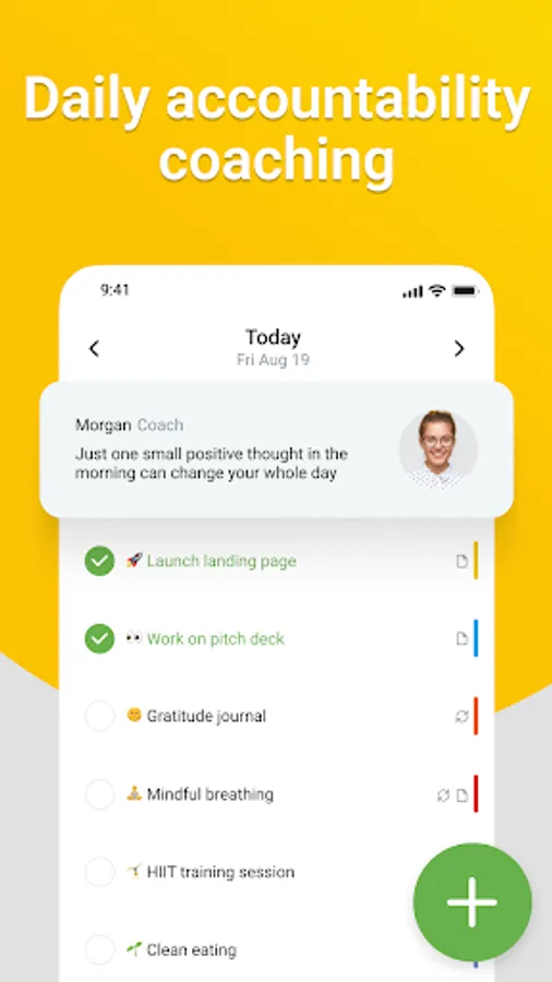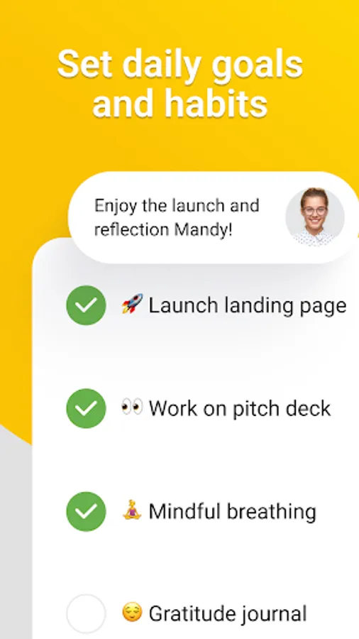 Each day you’ll be prompted to mindfully set your daily goals, and submit your progress at the end of the day. Your assigned coach (a human, not a bot or AI) will review and give the feedback, tips and encouragement to keep you moving forward.