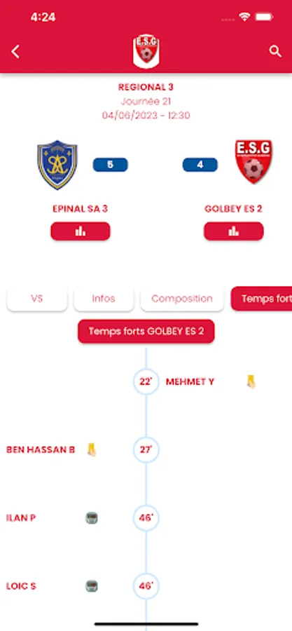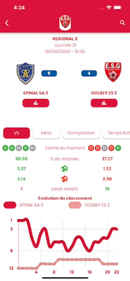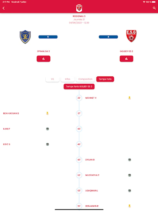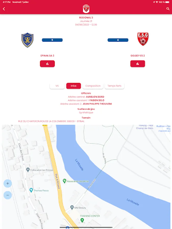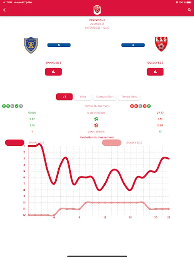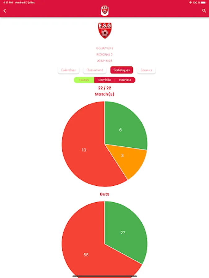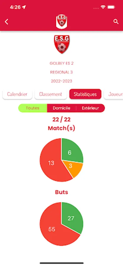 If you are a member of ES Golbey then you have access to additional features such as attendance at training, invitations to meetings, messaging and statistics on the club's teams but also opponents.