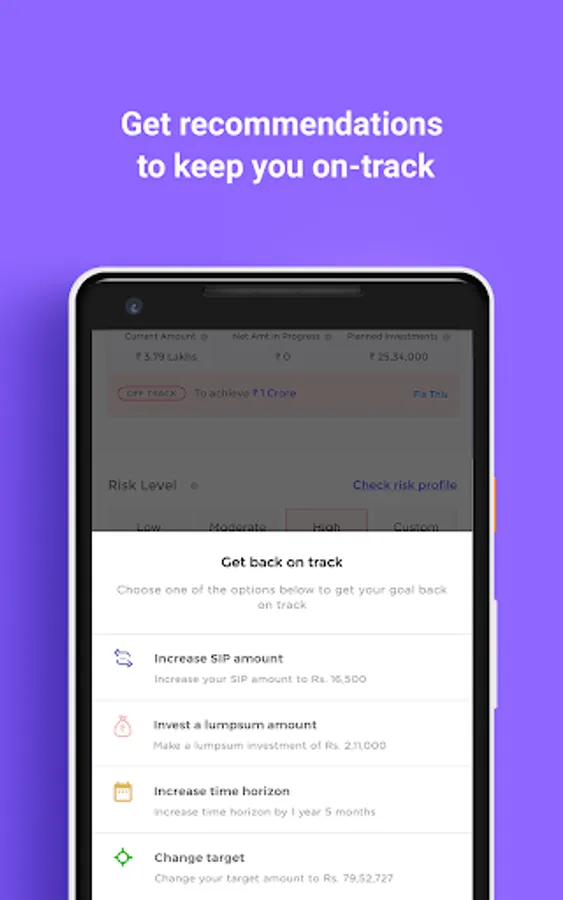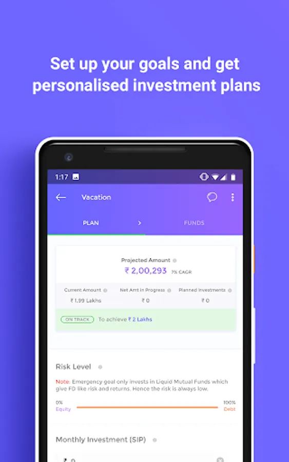You can plan and invest for each goal separately and see projections, set risk profile and track their progress.