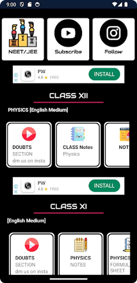 PIONS is a free application developed for students preparing for competitive exams like NEET, JEE and even boards. Send your doubts on our Instagram's handle to get video solutions. The app contains video solutions, practice papers and will be updated continuously for new papers, notes and formula sheets. Students preparing for state boards can also download the app.