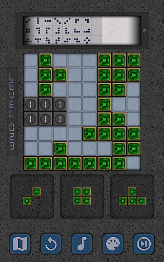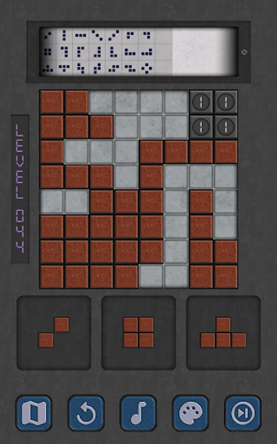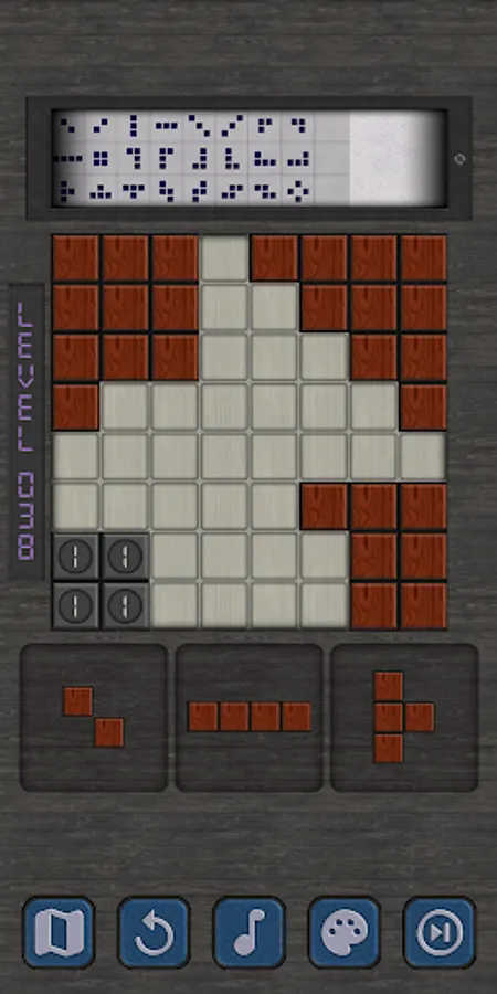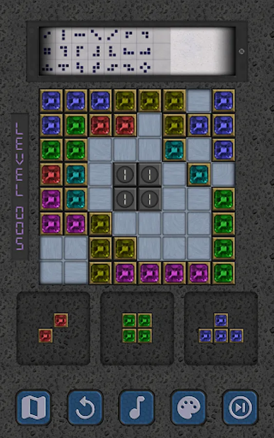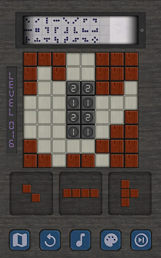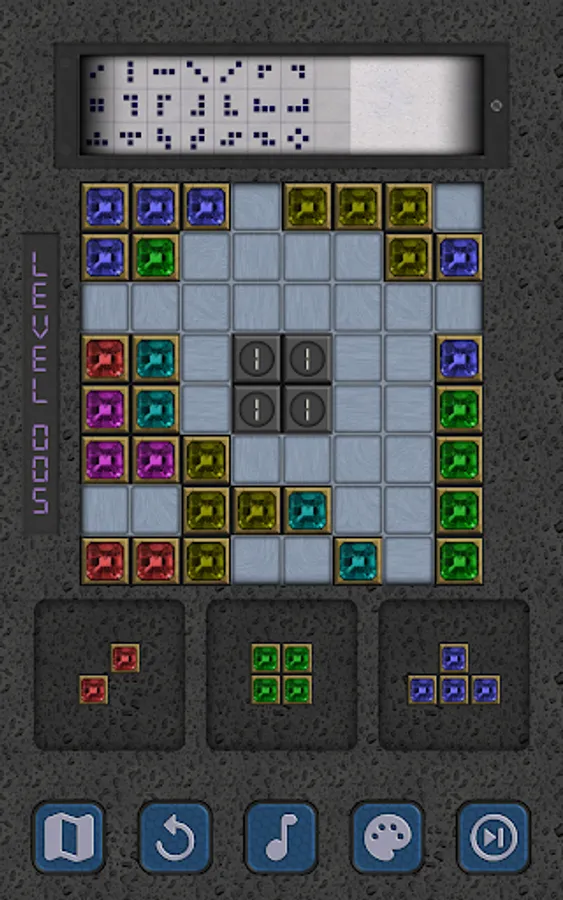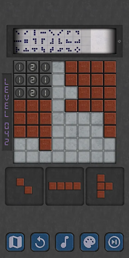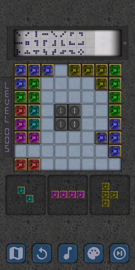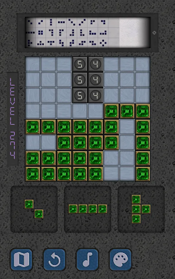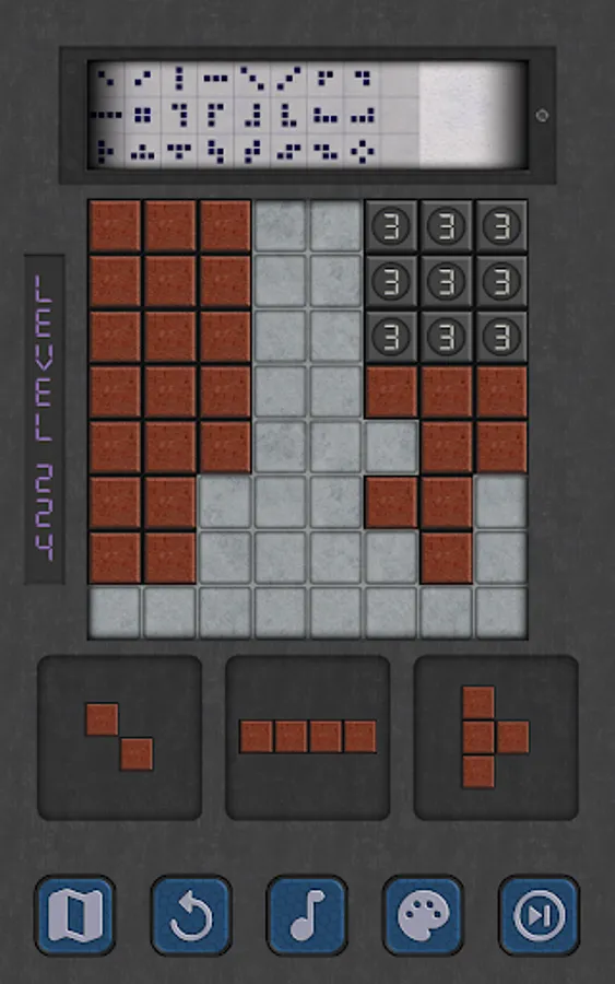 Each puzzle level has a limited number of game blocks, and the remaining blocks are displayed at the top of the game on a moving "TAPE".