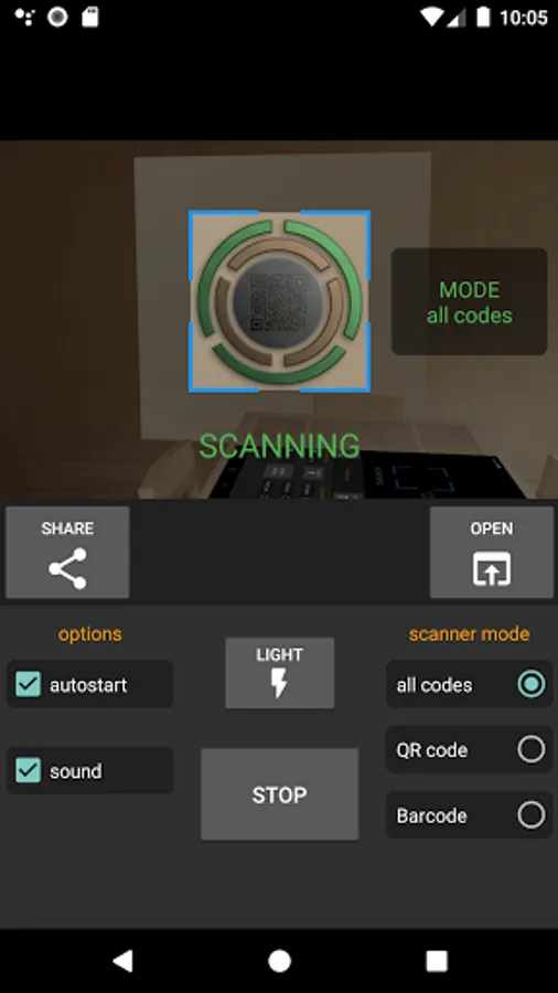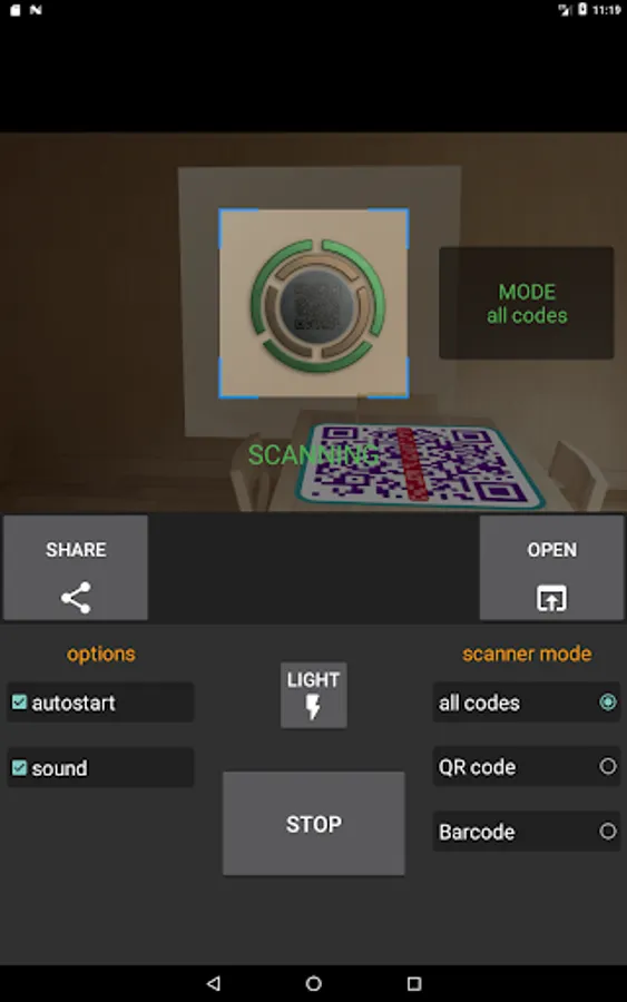2. Changing the scan format parameters (QR code, barcode, all formats) gives an instant effect.