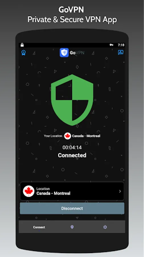Military-grade AES 128-bit encryption by GoVPN App will guard your internet connection and sensitive data wherever you are. GoVPN App keeps you safe on public WiFi hotspot.