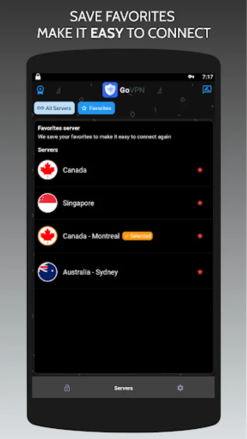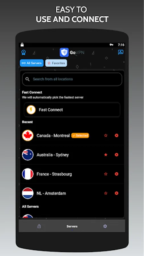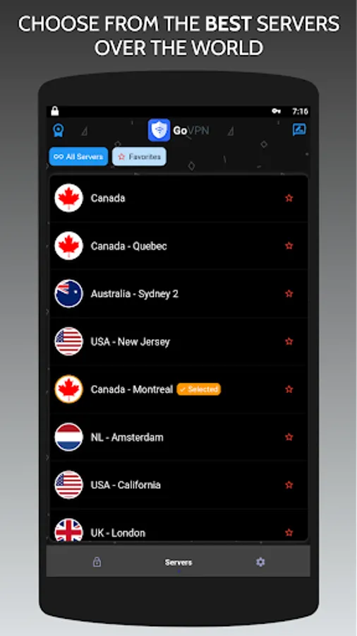 Access geo-blocked sites and apps with free GoVPN App proxy servers. GoVPN App ensures you worldwide VPN proxy servers with high speed and unlimited connection.