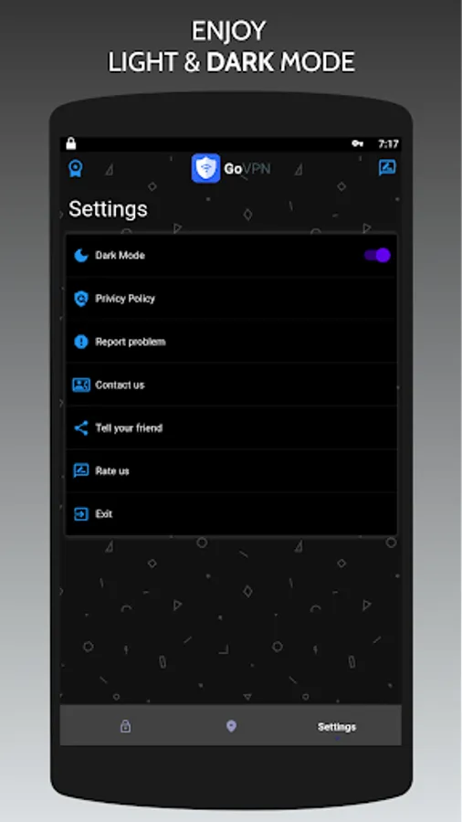 GoVPN App is a high speed, free and anonymous VPN service for you to access all your favorite sites. With GoVPN App on your android device, you can protect online privacy, stay anonymous on public Wi-Fi, and stream anywhere you want. Download GoVPN App to enjoy internet freedom now!