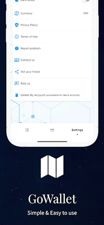 GoWallet has a convenient and modern user interface. It also supports dark mode.