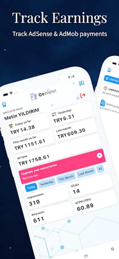 GoWallet is the best app to track your earnings with AdSense and AdMob on your Phone