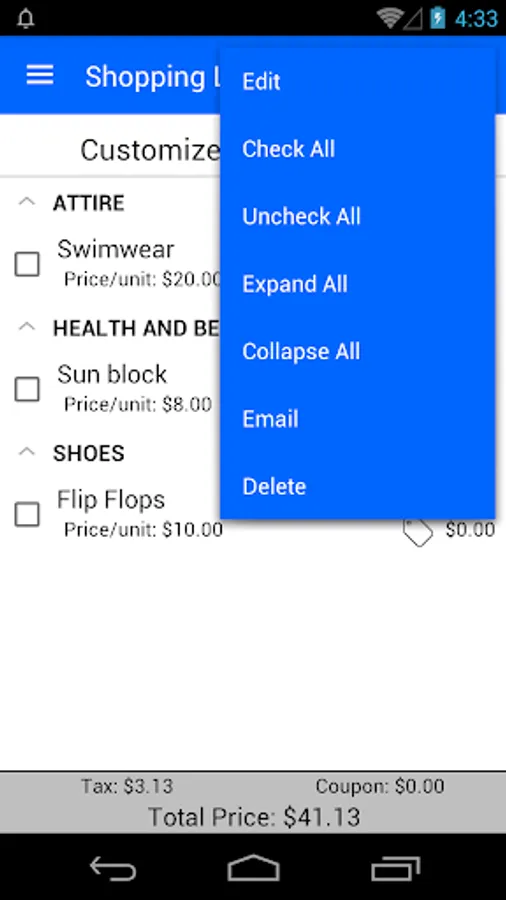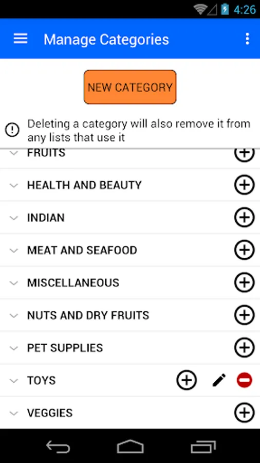 * Personalize app by adding your own items and categories