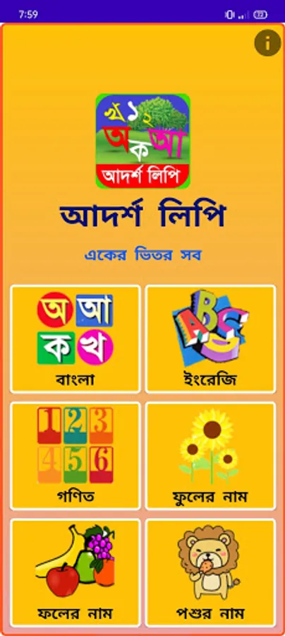 Names with pictures of different animals, birds, flowers and fruits