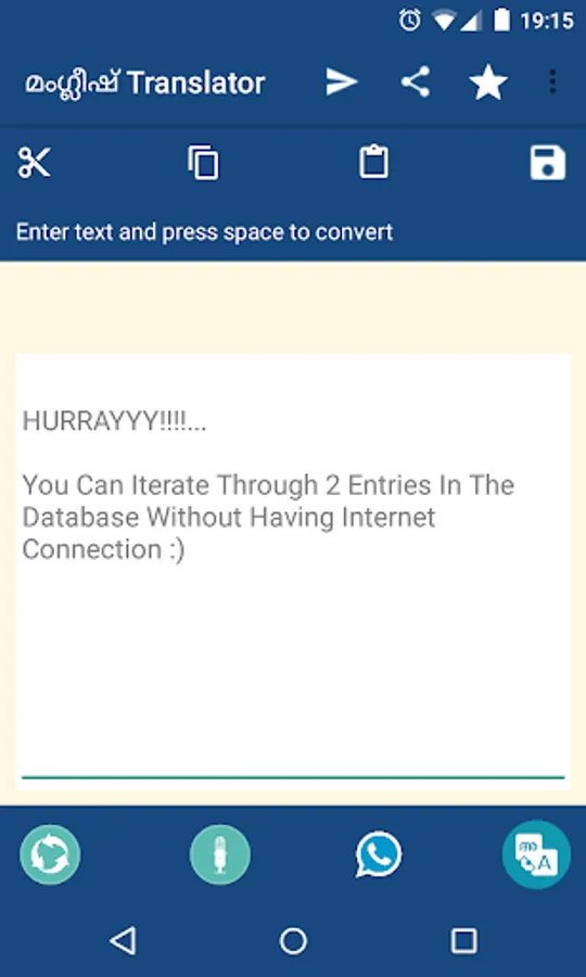 Manglish translator will help you to translate your Manglish or english words to Malayalam. We have implemented chat head like service along with the Translator application, so that you can easily switch/toggle between applications with a single click.