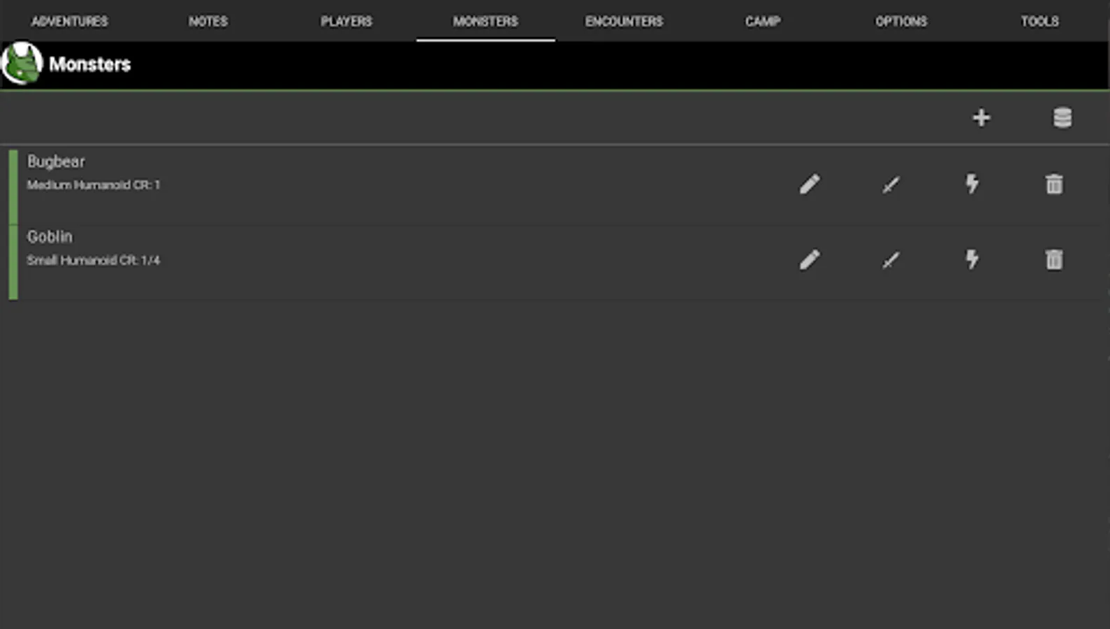 Manage Players, Monsters and Encounters