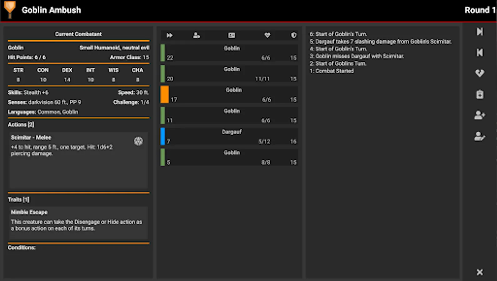 Manage all aspects of a 5e combat (Initiative, HP, Actions, Conditions, and more...)