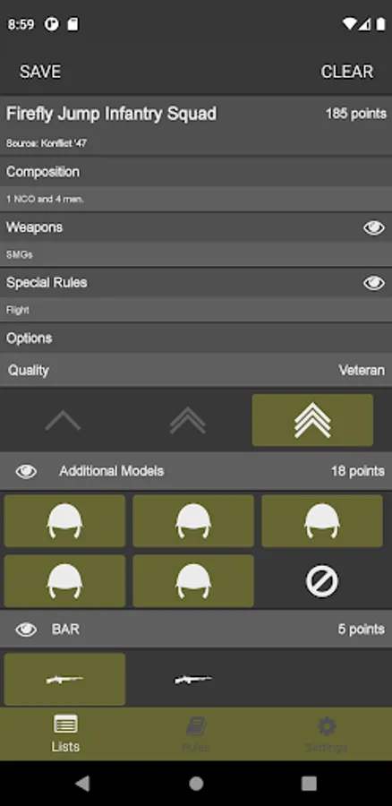 Maintain all your Army Lists for Konflikt '47 in this easy to use app. Contains all units and Army lists from the original source book and the two released supplements. View your list on app or export it for easy printing.