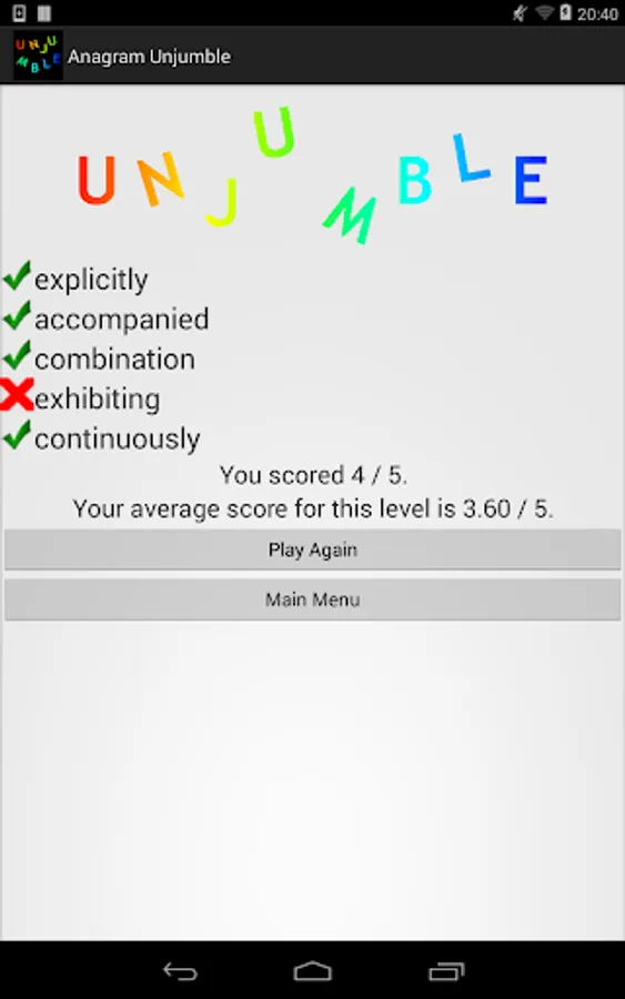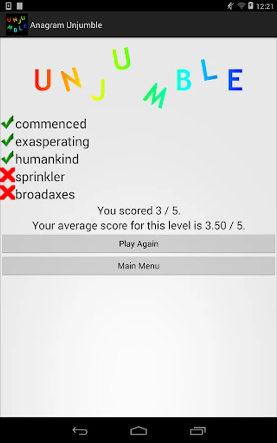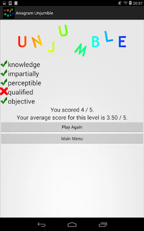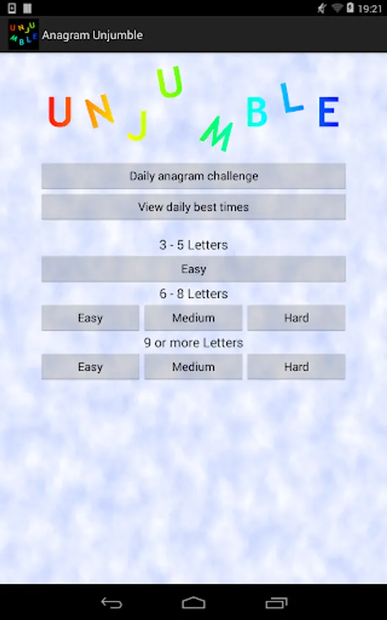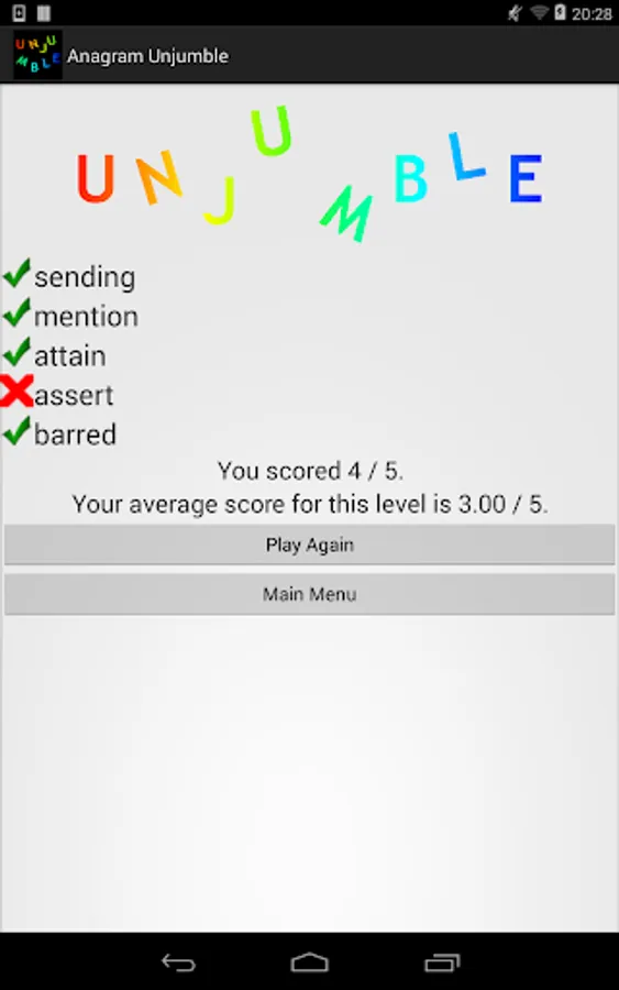 Unjumble the anagrams as fast as you can. This simple yet addictive word game keeps your brain sharp and improves your vocabulary. This game is ideal for word game fans.