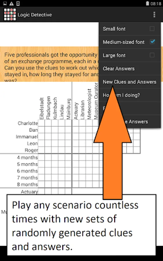 What's that? You've solved all the puzzles already? Unlike other apps, this one randomly generates puzzles so the same scenario can be played over and over again with new sets of clues and answers giving each puzzle unlimited playability.