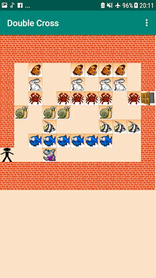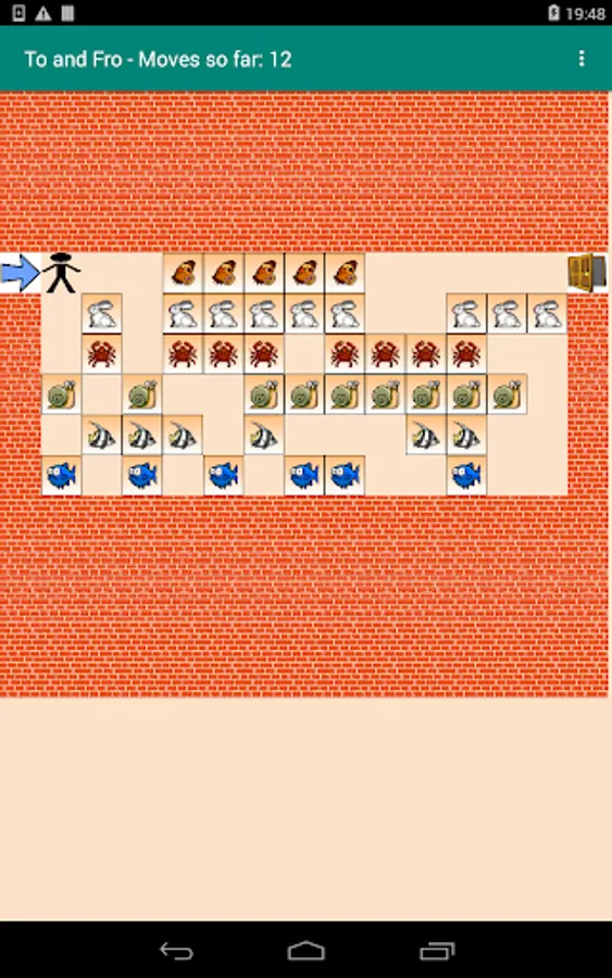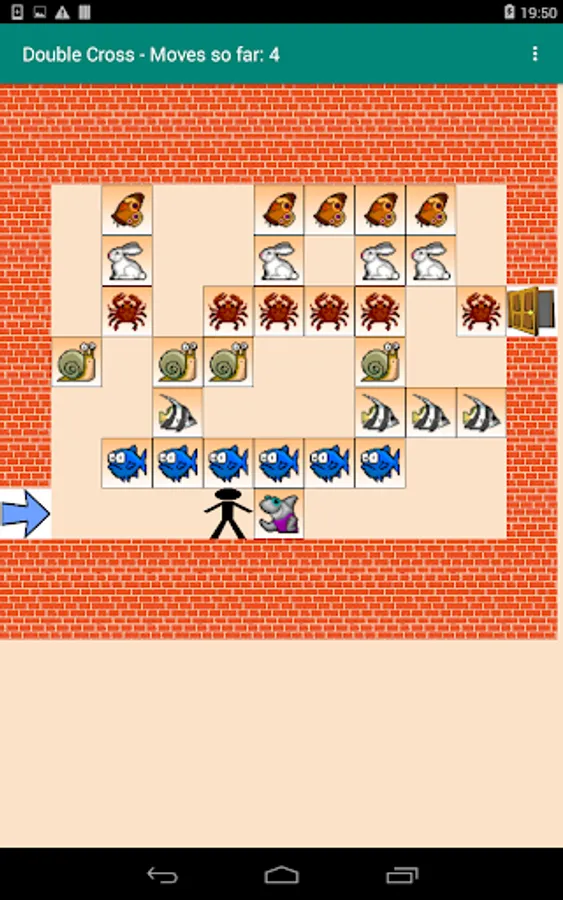Move the player by swiping up, down, left or right. Obstacles may be pushed left or right. Pushing an obstacle will move all obstacles of the same type. Obstacles may not be pushed through walls. The player may not move through walls. The puzzle is solved when the player has reached the exit door. Simple.