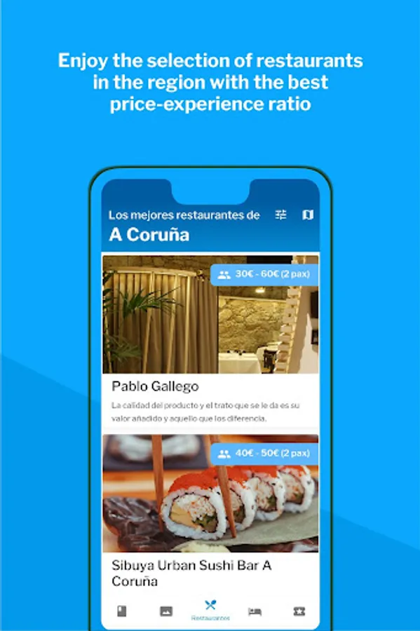 Welcome to A Coruña by GOAZ, the app that will help you discover the best places and experiences of the entire region, to enjoy the best of the gastronomy and the accommodations which are offered and much more.