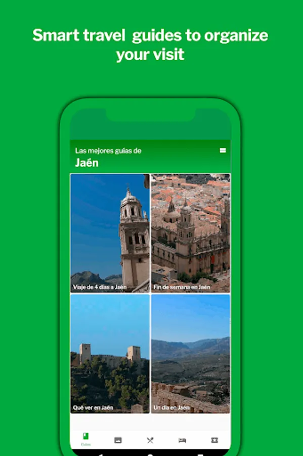 In Jaén by GOAZ you will find four travel guides of the city, as it will help you organize your trip in a way that adapts your desires. You will find a “What to see” guide with the essential places that you must visit in that city, without time or routes, so you can organize yourself as you want. But if you are looking for a more planned itinerary, you can also consult the guides for "One day", "Weekend" or "4-day trip". With these guides you will not have to worry about organizing your trip, as you have already done it from morning to night.