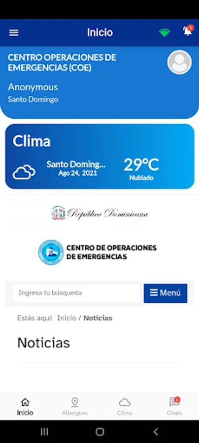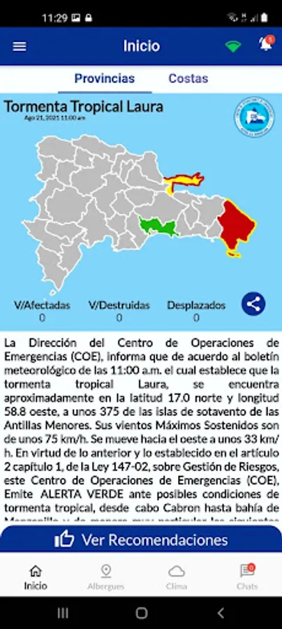 by the COE to the public, with details such as: affected provinces, Alert Level, Type of Generating Event (Hurricane, Earthquake) among other details.