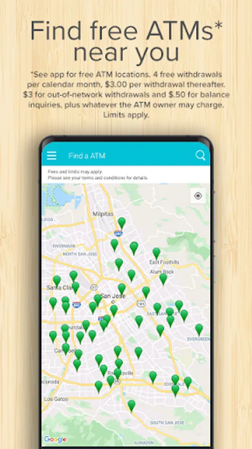 * See app for free ATM locations. 4 free withdrawals per calendar month, $3.00 per withdrawal thereafter. $3 for out-of-network withdrawals and $.50 for balance inquiries, plus any fee the ATM owner may charge. Limits apply.