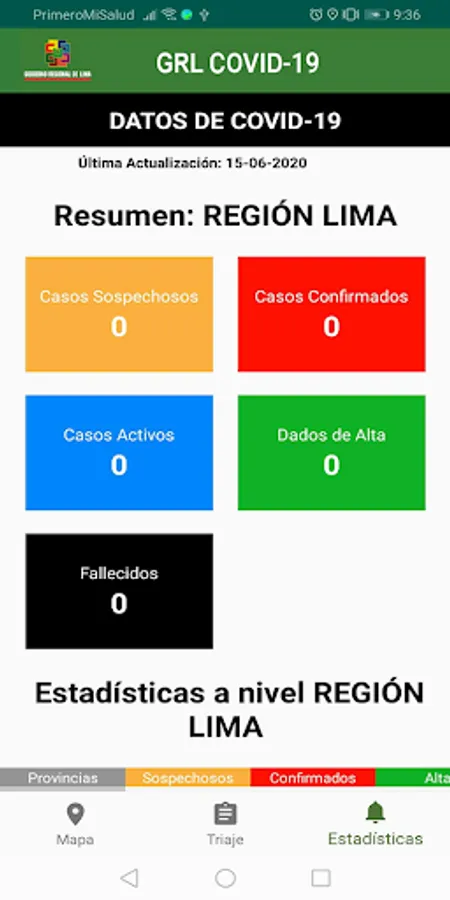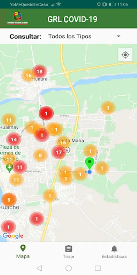 -Make a geolocation of people who have contracted coronaviruses, publicizing the irrigation areas in the Lima region, displaying the suspected and confirmed areas of Covid-19. Followed by Triage and Statistics.