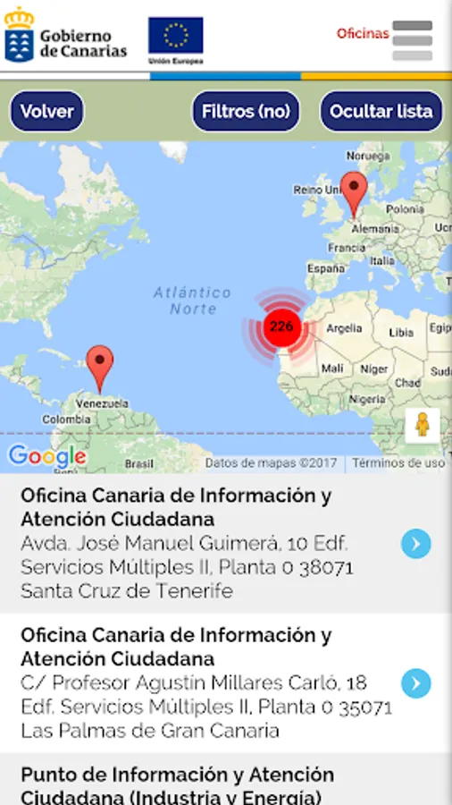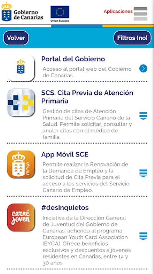 Finally, as a direct means of interaction between the citizen and the administration, the application has access to social networks of the Government of the Canary Islands.