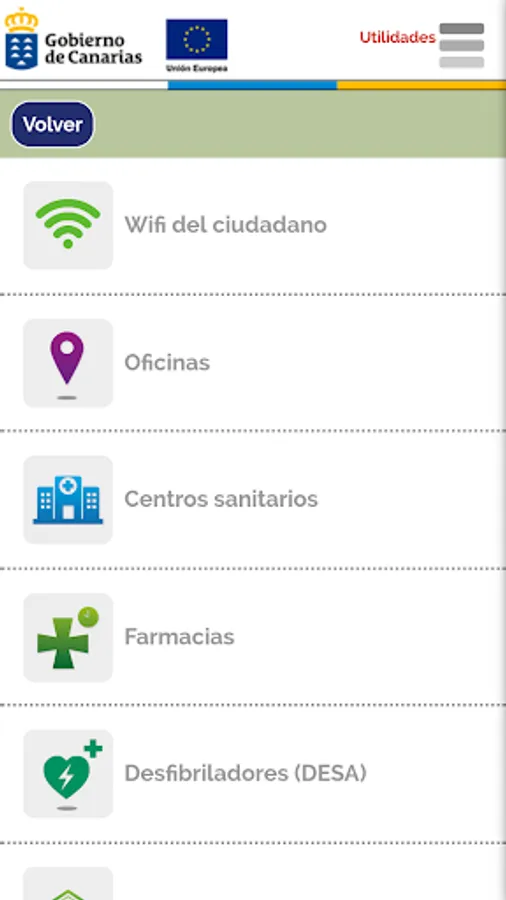 It also has a utility section where a location map and information about the wireless networks available free in various public buildings, Office of Information and Citizen Services, Office of Specialized Care Registry offices, health centers offered, chemist, schools, arrivals and departures of flights in the Canary Airports and ports canaries list of shipping companies with information, schedules, etc.