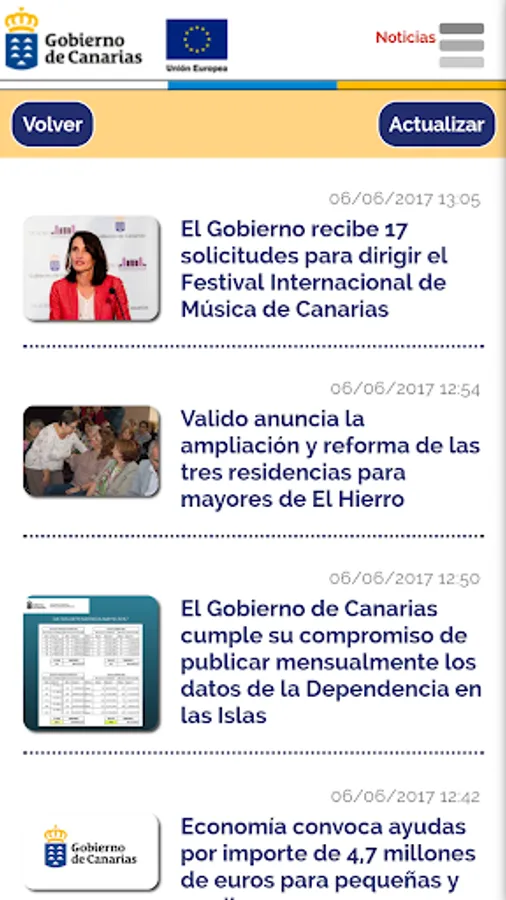 The application also has a news and announcements (including push messaging) so that the citizen is at all informed both the Canarian government activity as possible and warnings that may occur when day to day.
